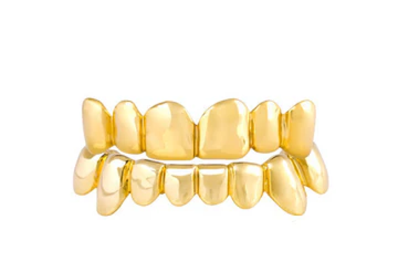 Grillz full sur 8 dents en haut et 8 dents en bas, Or juane ou Alliaje doré